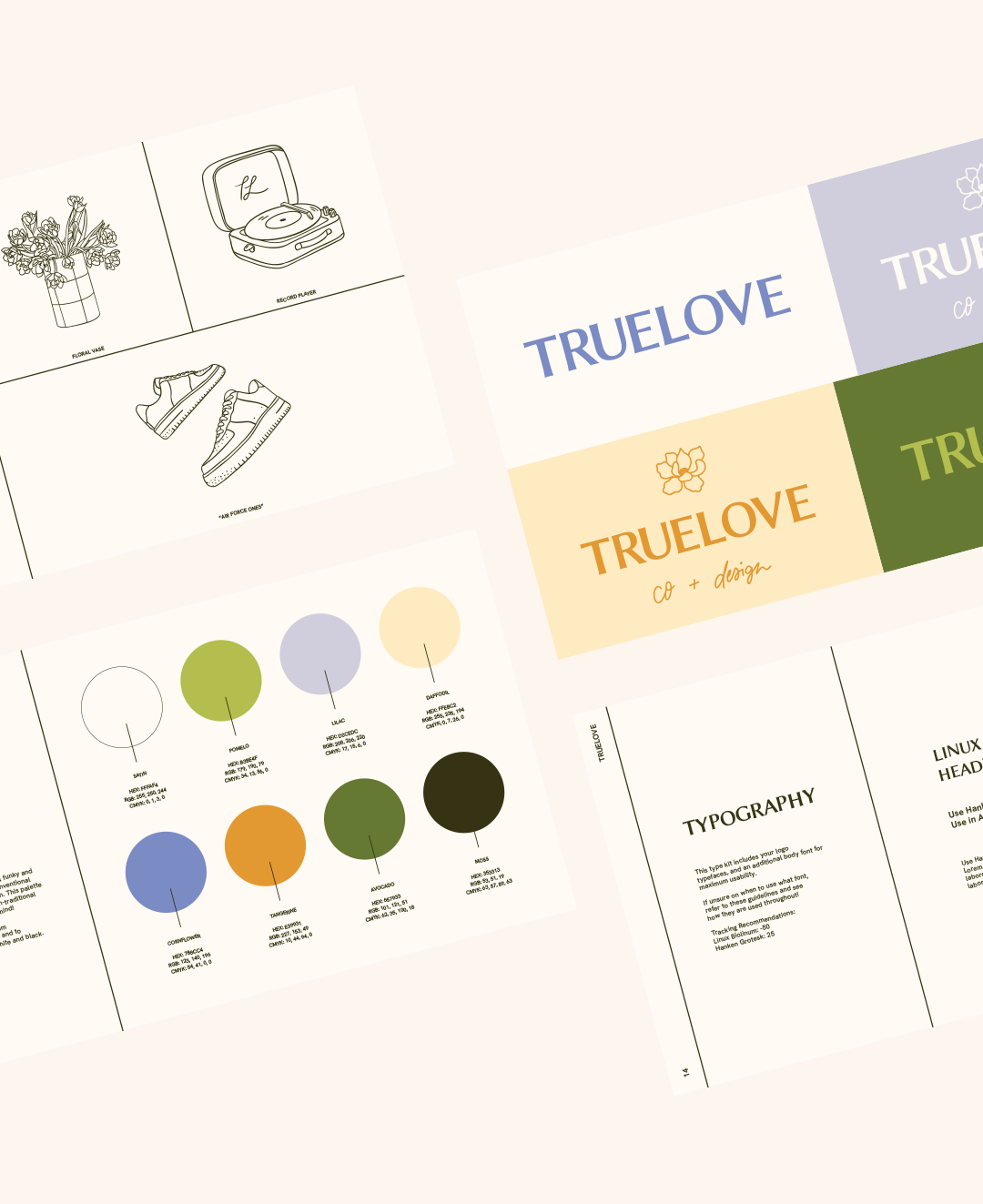 Truelove has been designing weddings for the boundary-pushers for nearly a decade. With their signature style being colourful, eclectic, and non-traditional they needed a brand identity to match! This rebrand focused on bringing the personality that they infuse into their work, into their brand. We achieved this with big, bold colours, chunky typography, and illustrations that break the mould of “bridal”.